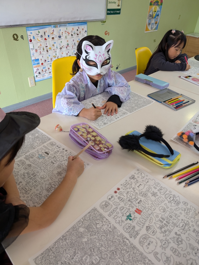 Happy Halloween! Our kids Halloween classes this year were filled with ghouls and ghosts of all sizes! We had a fun time decorating the Suehiro classroom and hope all you black cats and scary witches enjoyed it, too! Below is a selection of photos from our classes.