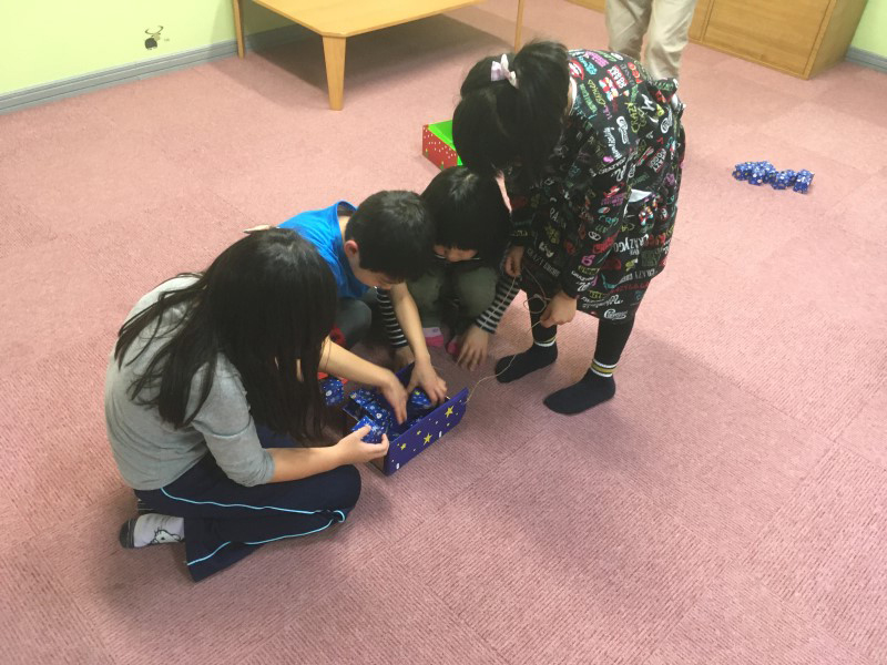 Merry Christmas! We hope you all had fun at our annual Christmas classes this year! Below are a selection of pictures take at our Sueihiro branch. You can see the "Snowball Toss" and "Packing Santa's Sleigh" relays. Student also receives a gift at the end of class!