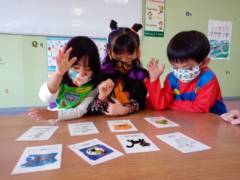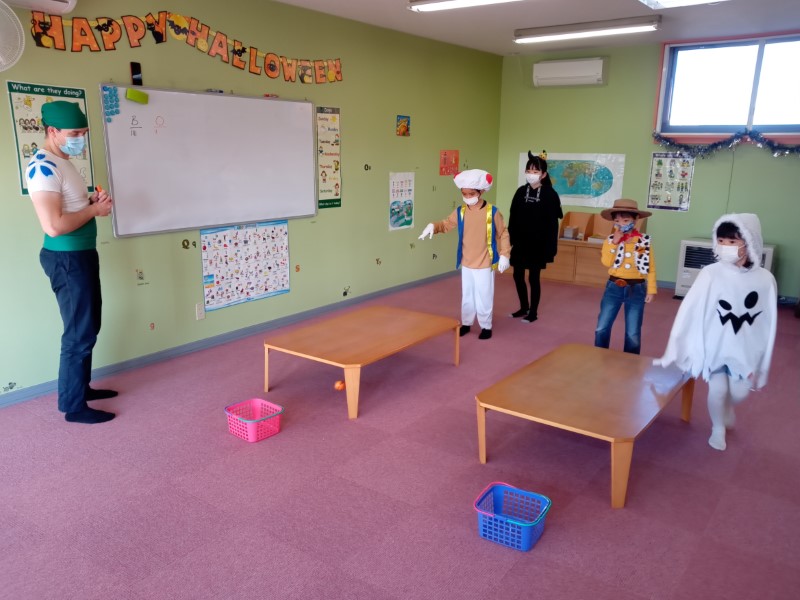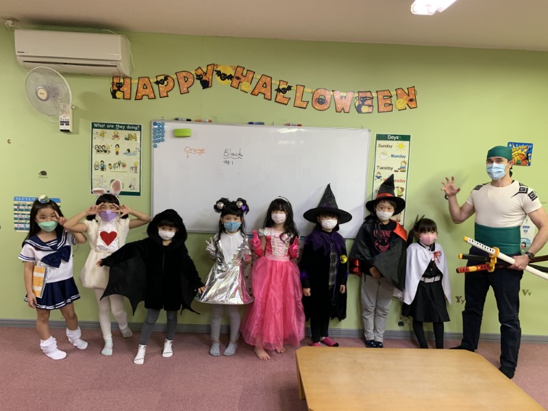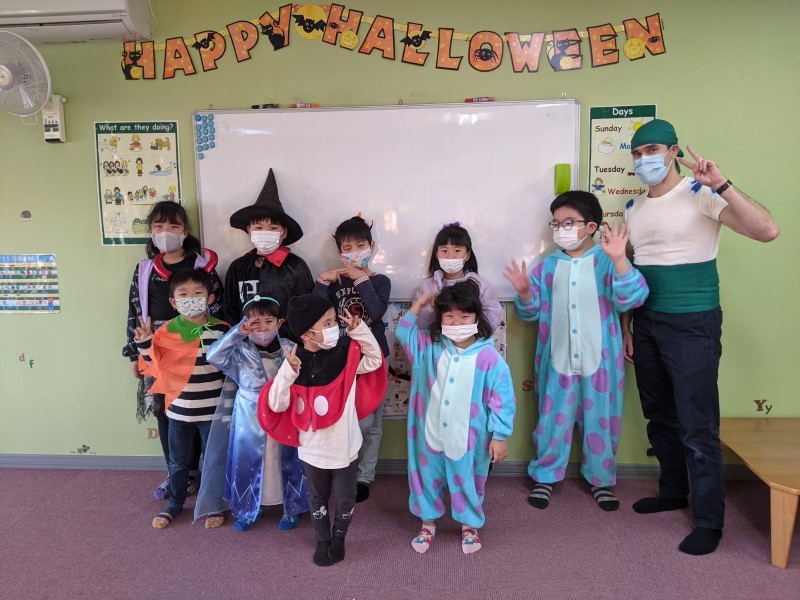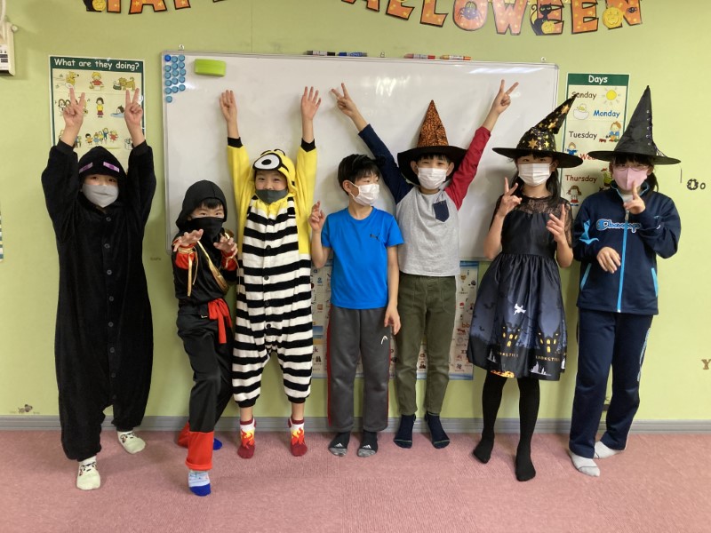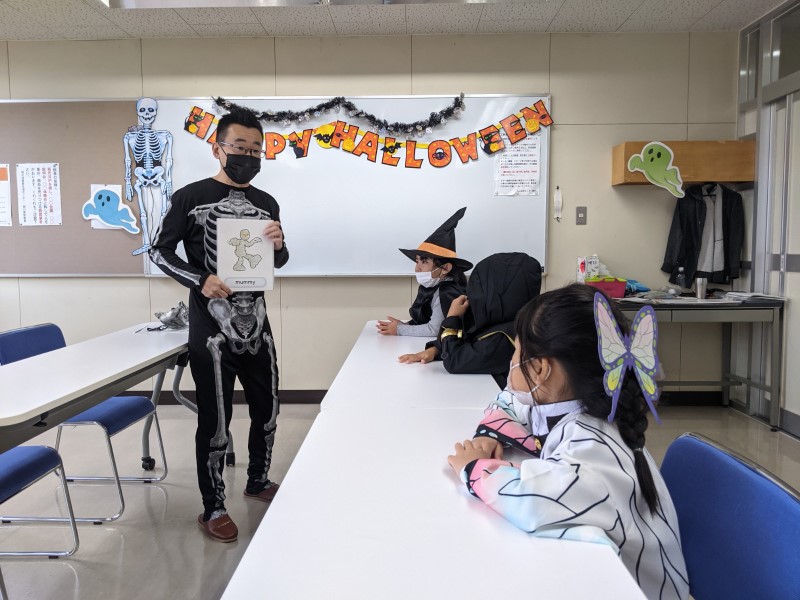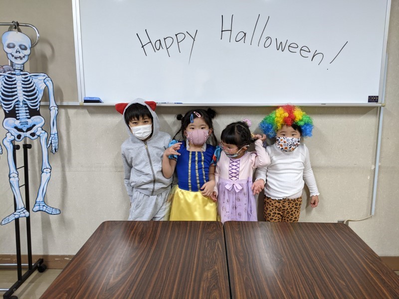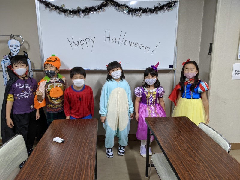 Happy Halloween, everyone! We hope you all had a fun time at our Halloween classes this year! Here are some pictures from some of our classes. Did you wear a costume? What were you this time? This year our teachers were a hedgehog, a skeleton and Roronoa Zoro from One-Piece!2年連続でハロウィン・フェスティバルは中止、という事で今年も教室で「ハロウィン・レッスン」を行いました。当日は幼児クラスから小学全学年まで、各クラス、先生も生徒もコスチュームを着て、ハロウィンに関する単語やフレーズを練習して、トリックオアトリートや、ゲーム、クイズ等で特別なレッスンを楽しんでもらいました。