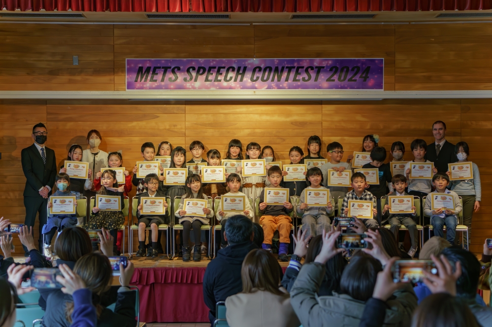 The METS English Speech Contest for 2024 was held on Sunday, March 10th. Thank you to everyone who participated this year! Below is a selection of pictures from the event.Standing on stage infront of your peers and parents is a nerve-wracking experience but everyone did a great job on delivering their speeches!